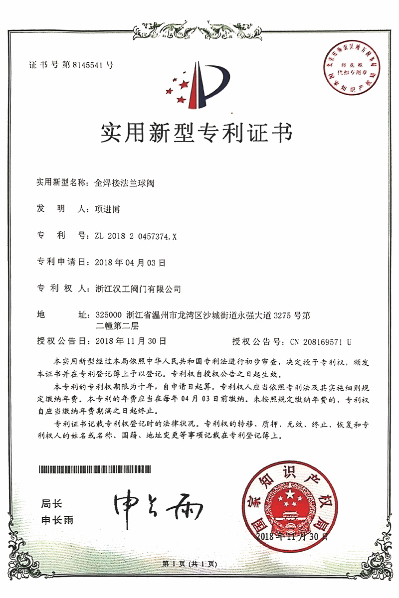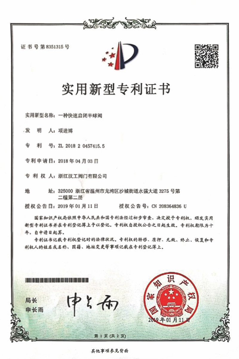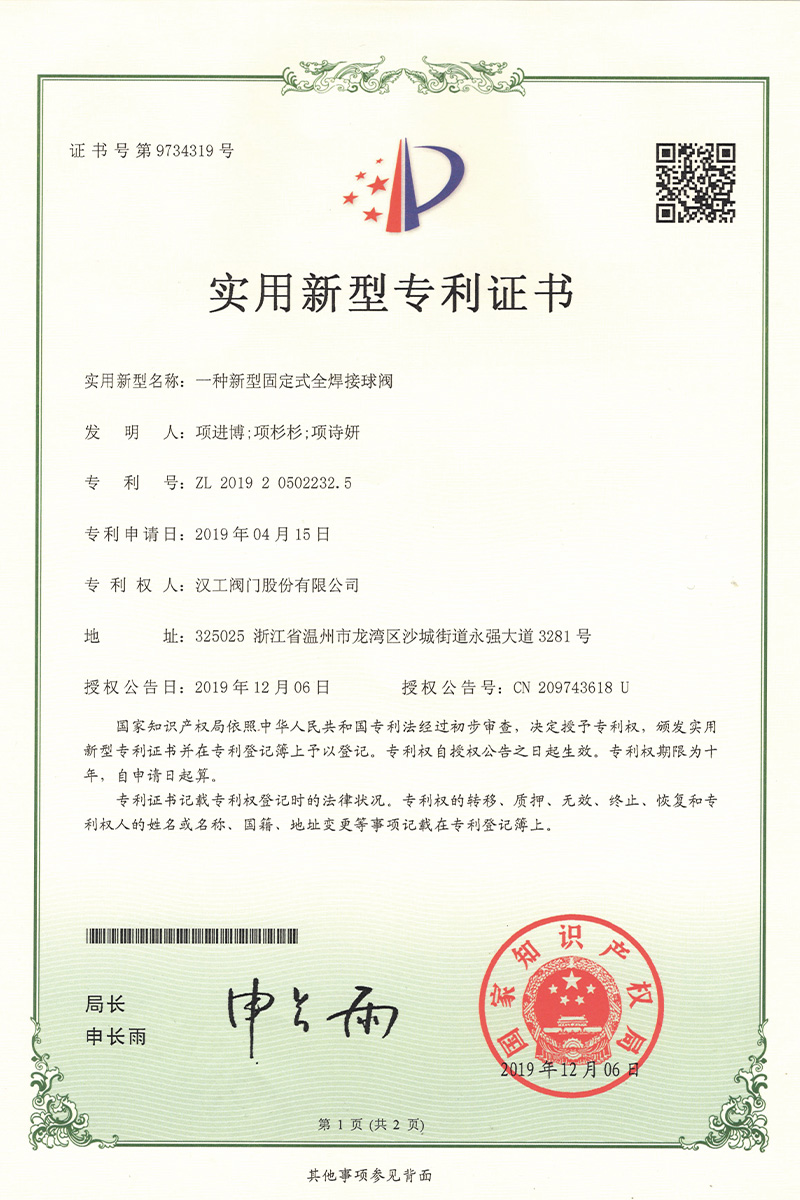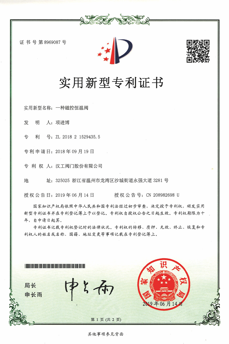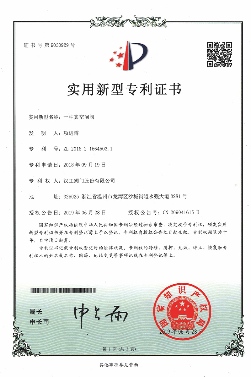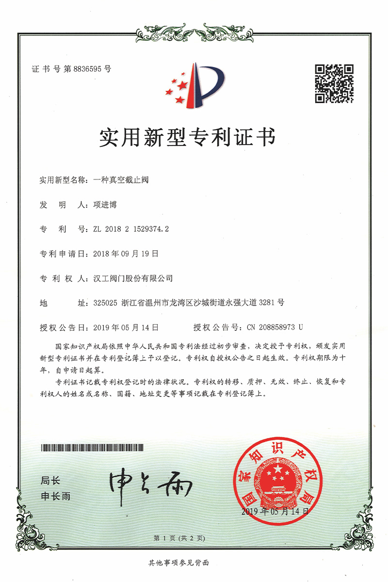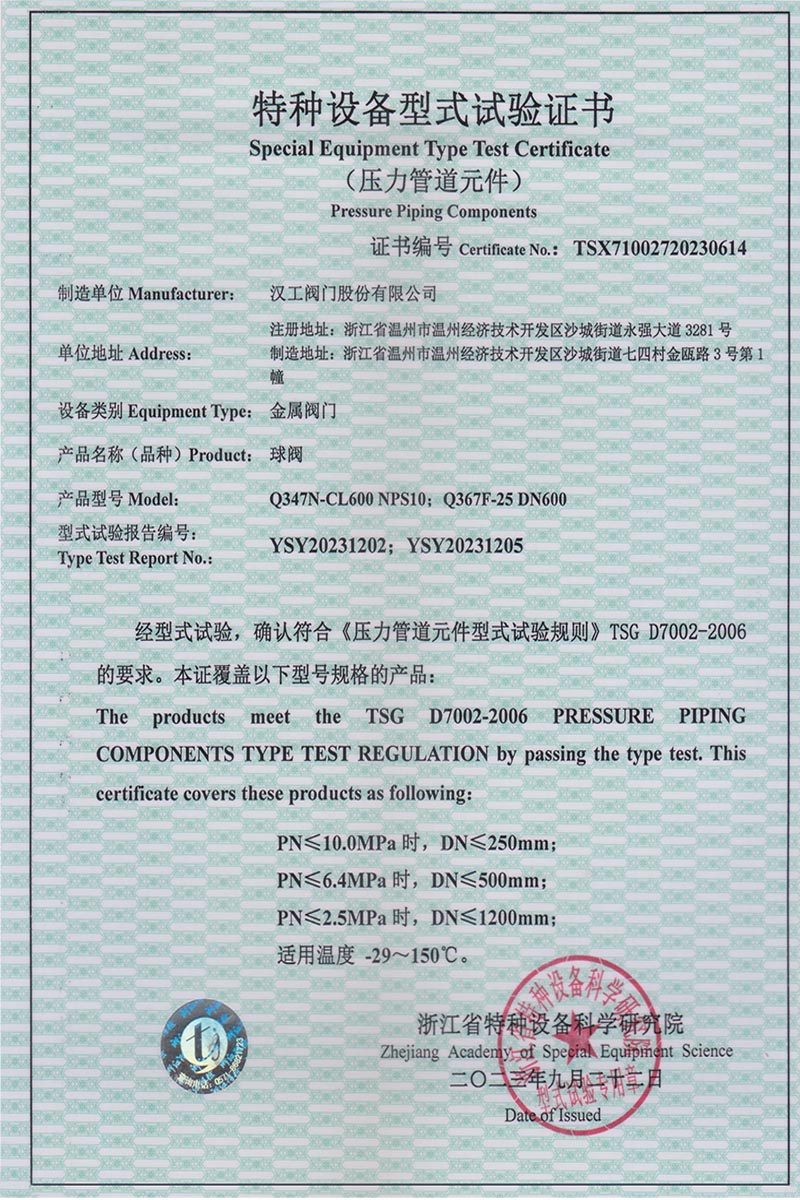 公司先后通過了ISO9001:2008國際質(zhì)量管理體系認證,ISO4001:2004環(huán)境管理體系認證,GB/T28001-2001職業(yè)健康安全管理體系認證,中華人民共和國特種設備制造許可認證(TS),中國石油和石油化工設備工業(yè)協(xié)會團體會員單位,中國化工集團公司合格供應商成員單位,中國華電集團公司集團級供應商成員單位,中國華能集團公司供應商,中國城市燃氣協(xié)會團體會員,中國建筑金屬結(jié)構(gòu)協(xié)會會員單位,中國著名品牌等這一系列的質(zhì)保體系是漢工閥門在設計、開發(fā)、制造、銷售、服務于一體的后盾力量,確保了漢工閥門的質(zhì)量與品牌。